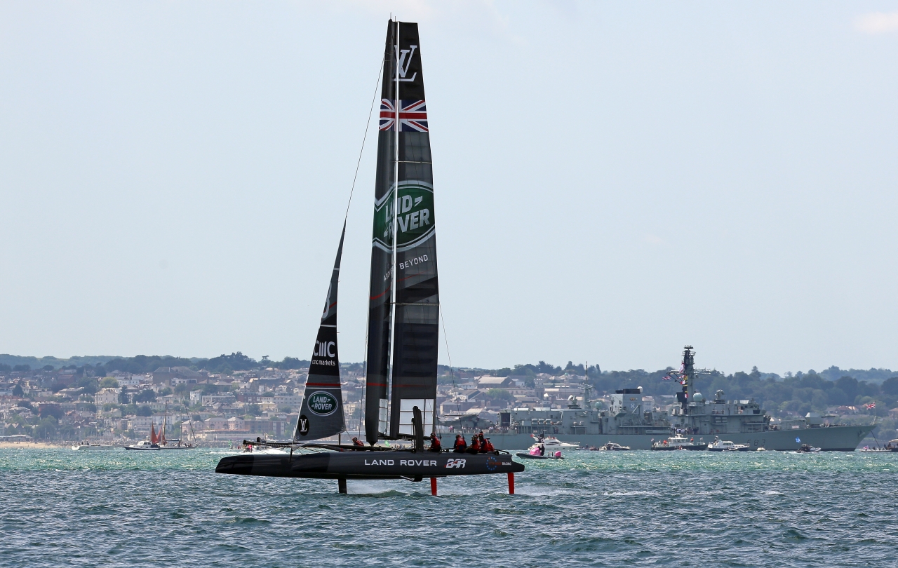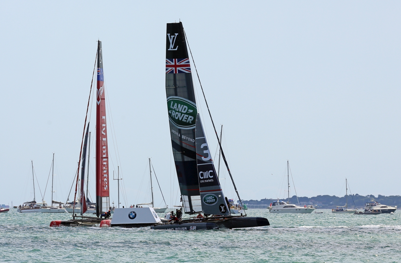 Land Rover BAR races Oracle to the line. Ben Ainslie won! |
