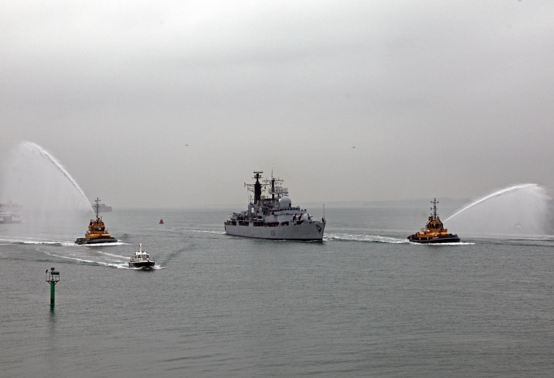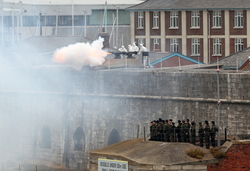 As she begins her approach - a 19 gun salute (battle honours and Admiral onboard) |