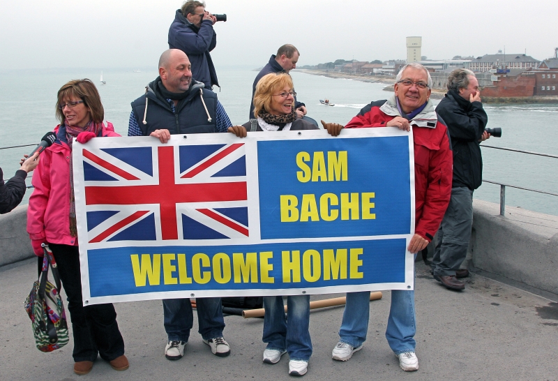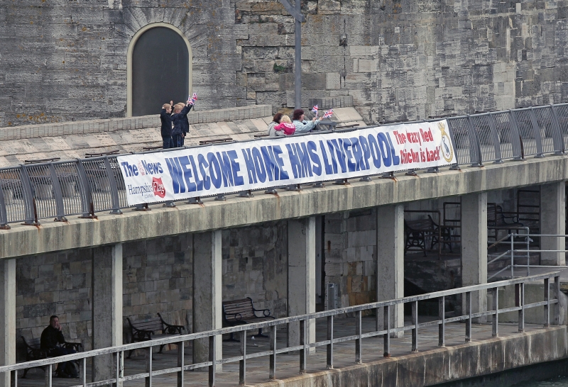 The Portsmouth News "Welcome Home HMS Liverpool" banner over Victoria Pier |