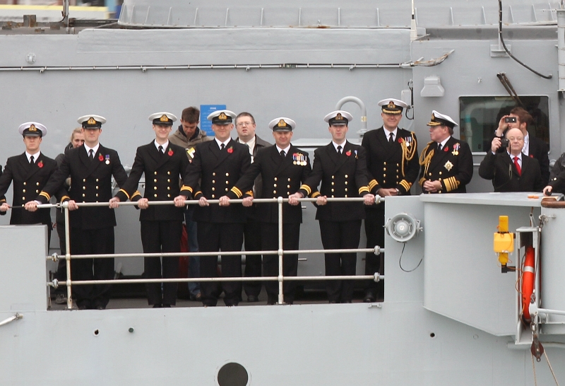 About to pass HMS Brocklesby with their own salute of three cheers for HMS Liverpool |
