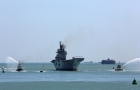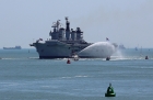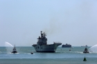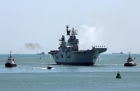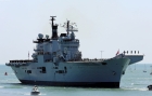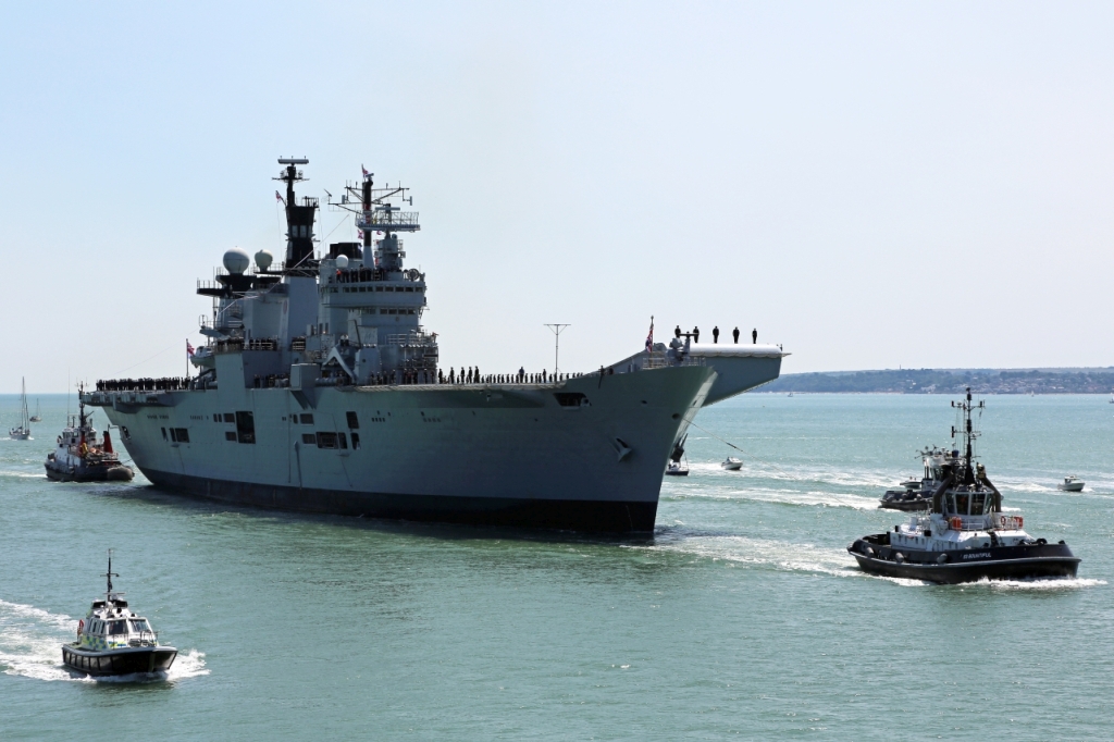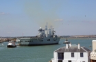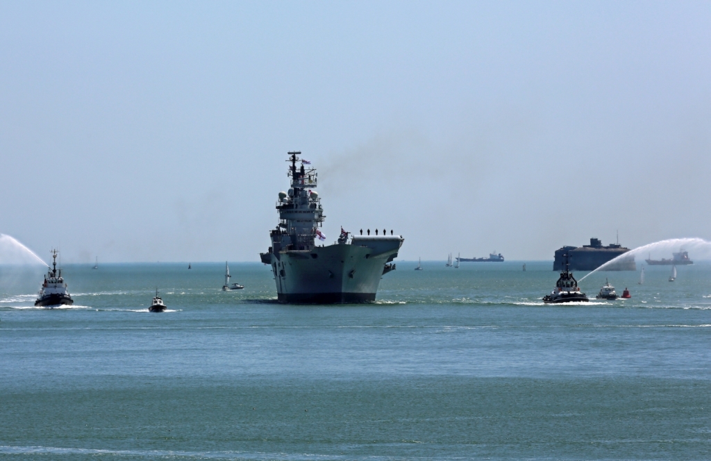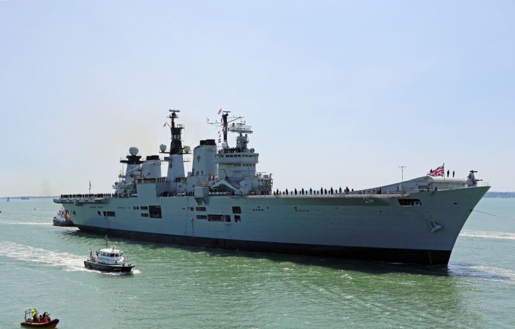 HMS Illustrious in Portsmouth harbour now as helicopters pass overhead |