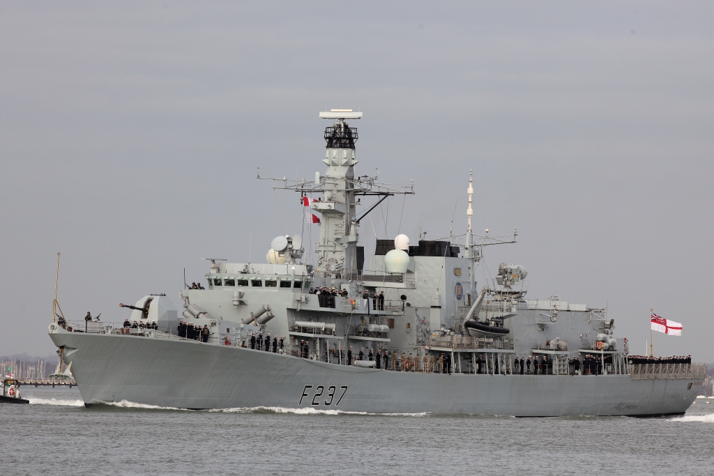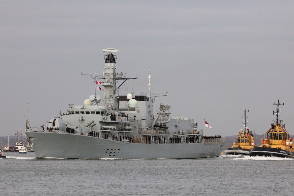 HMS Westminster being tugged from the jetty |