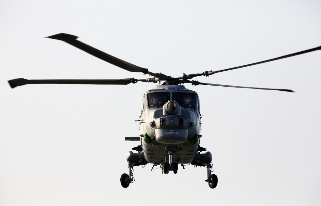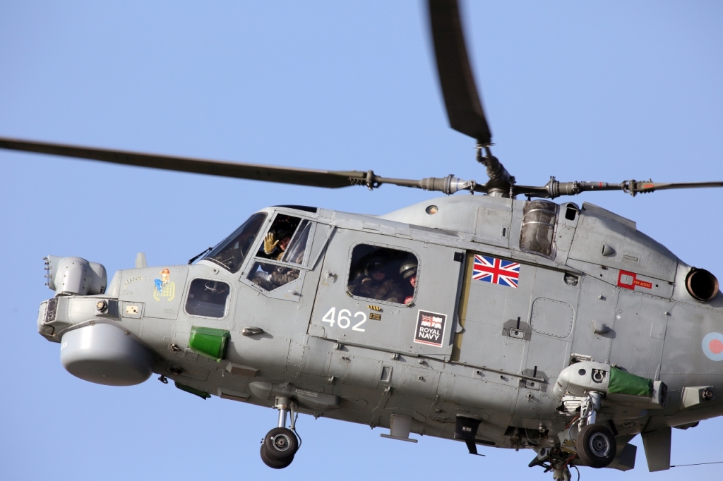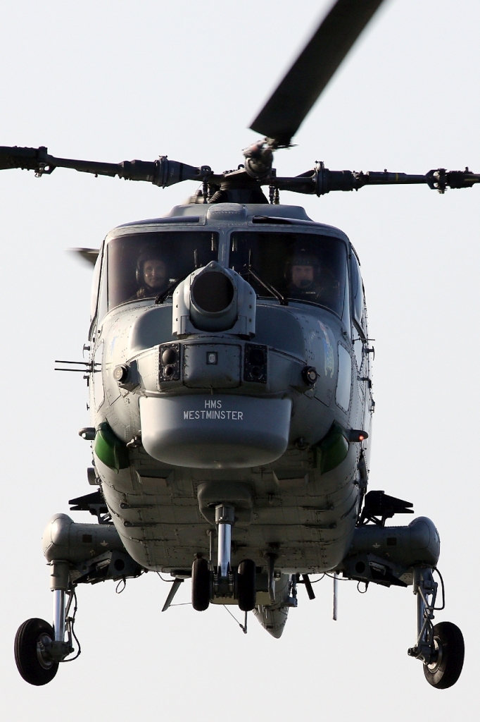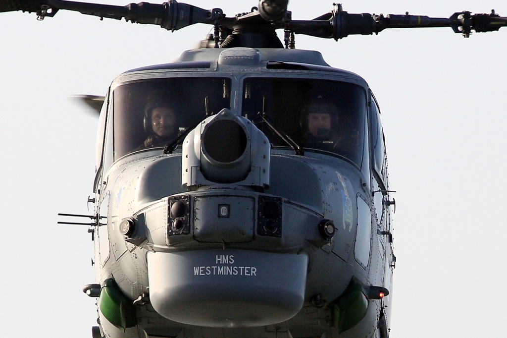 | HMS Westminster's Lynx Mk.8 salutes the Round Tower |